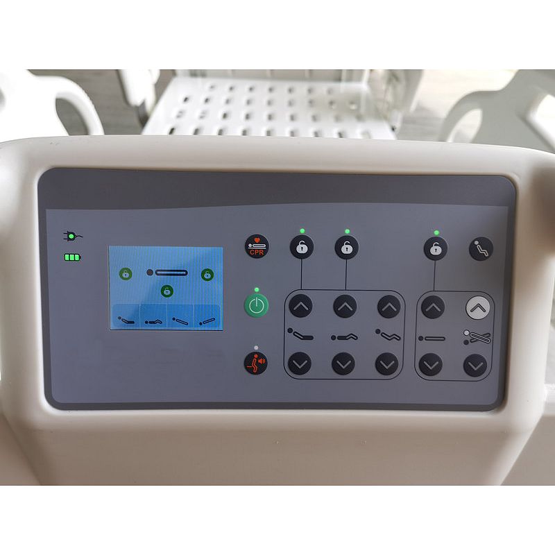 6) Rail controller: embedded on side rail at head side, with electric CPR button, Battery power display and angle indicator .