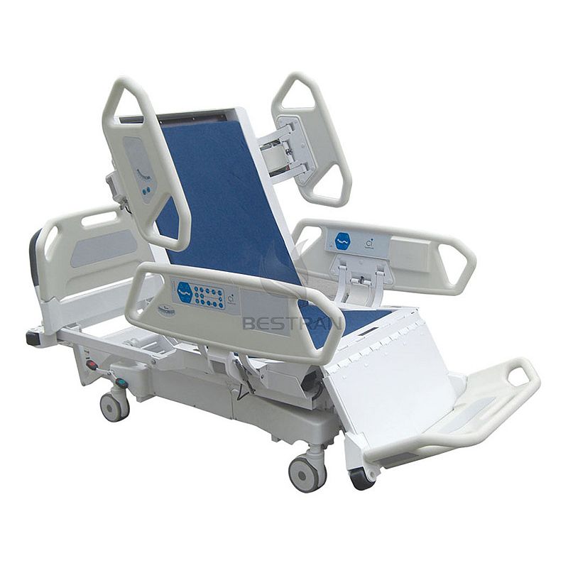 5) Detachable ABS handrails, each side two pieces, Embedded controllers on two side rails on footside with angle indicator for Trendelenburg & anti-Trendelenburg, two side rails on head side with angle indicator for backrest.